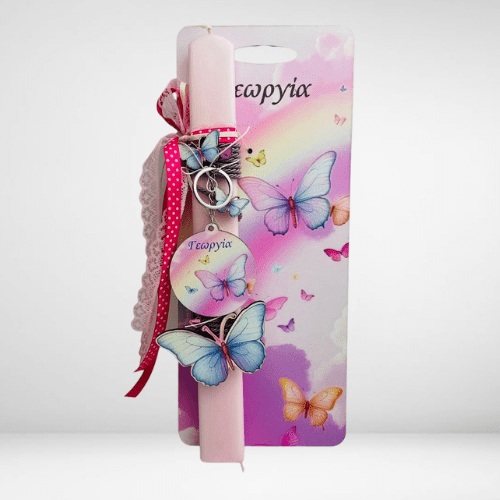 Λαμπάδα με πεταλούδες μαζί με πλάτη