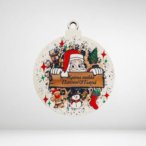 Ξύλινη μπάλα με Άγιο Βασίλη Παππού&Γιαγιά